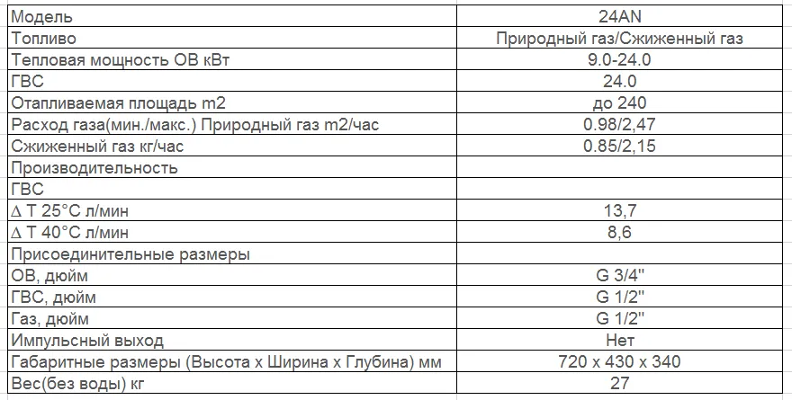 - Возможность пользоваться отоплением и горячей водой при низком входном давлении газа в системе газопровода