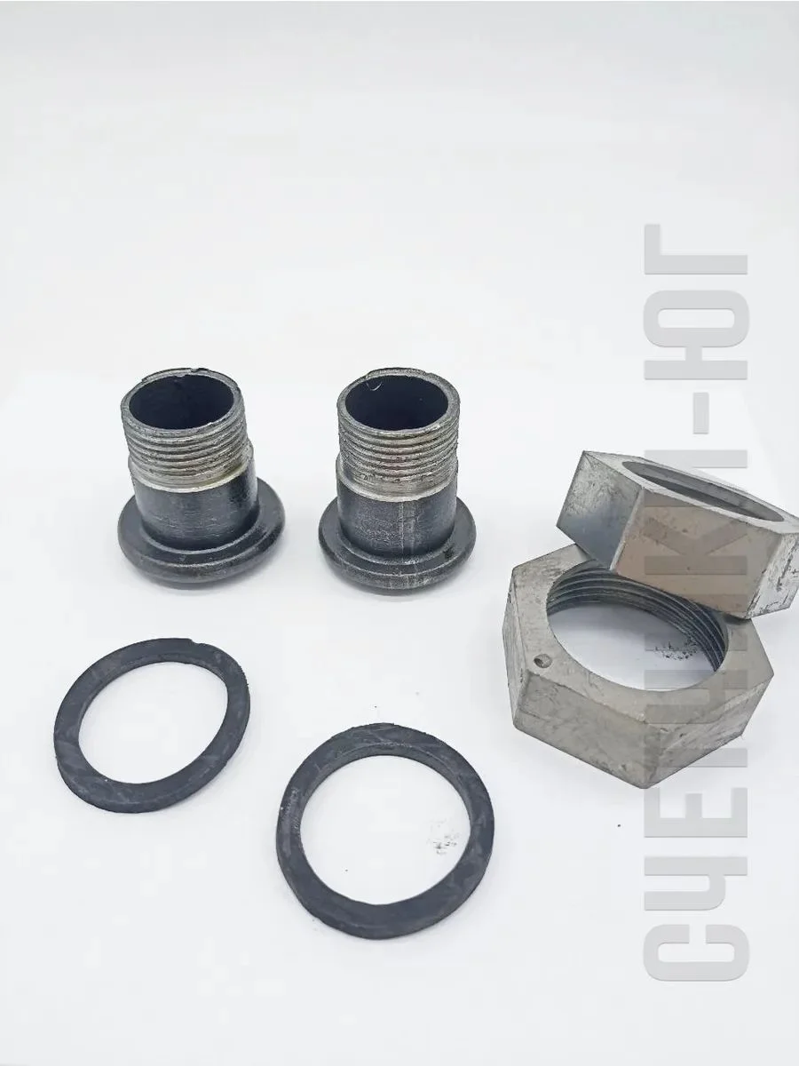 Комплектация - 2 штуцера, 2 прокладки и 2 накидные гайки