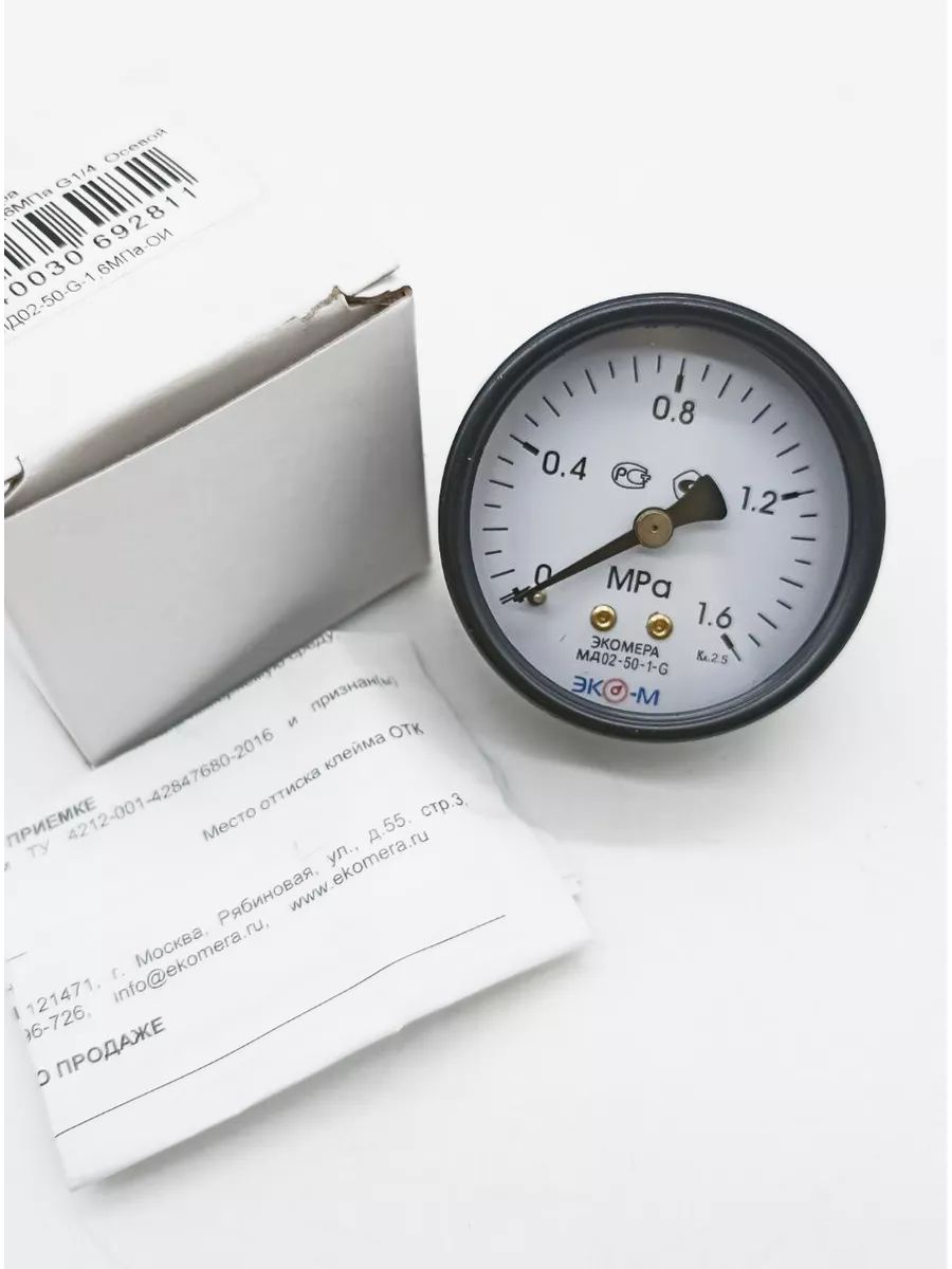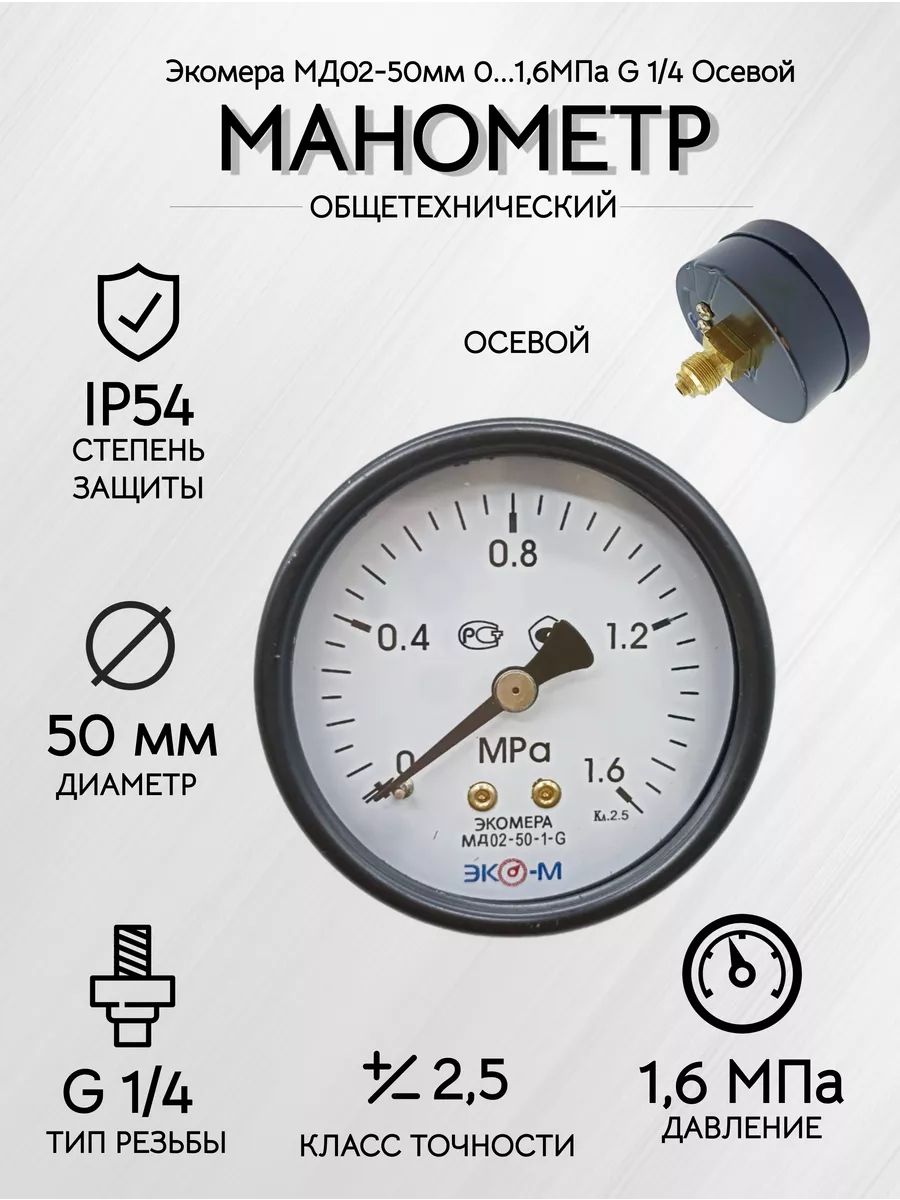 Манометр Экомера МД02-50мм 0..1,6МПа G1/4 Осевой