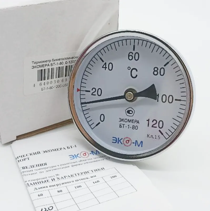 Термометр биметаллический ЭКОМЕРА БТ-1-80, 0-120С, L=80