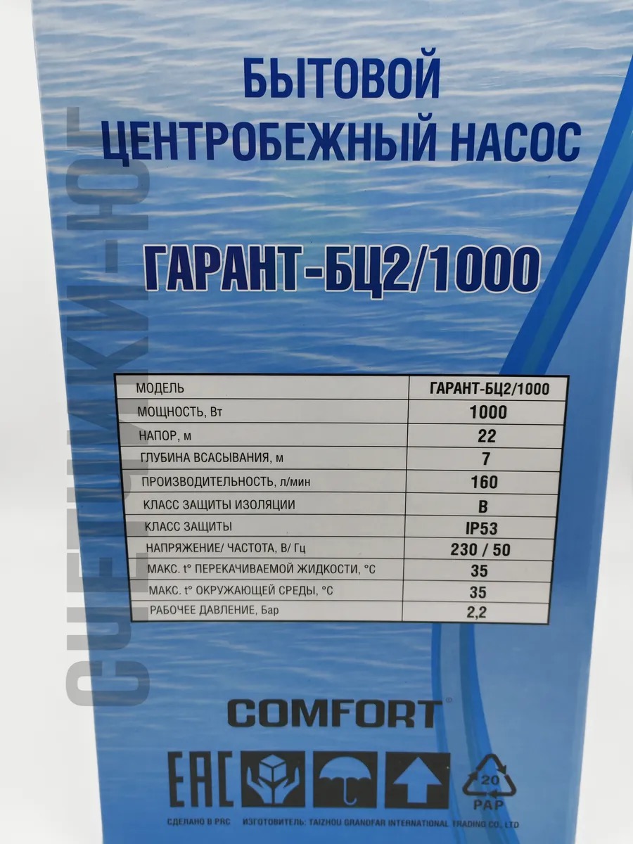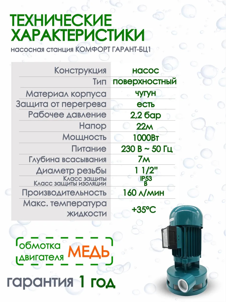 Насос Гарант БЦ-2 1000 Вт (Комфорт) – это надежный бытовой центробежный насос, идеально подходящий для решения разнообразных задач по перекачке и откачке воды. С его помощью вы сможете легко справляться со сбором воды из колодцев, скважин а также перекачивать воду из бочек, значительно упрощая полив на дачном участке или в саду.