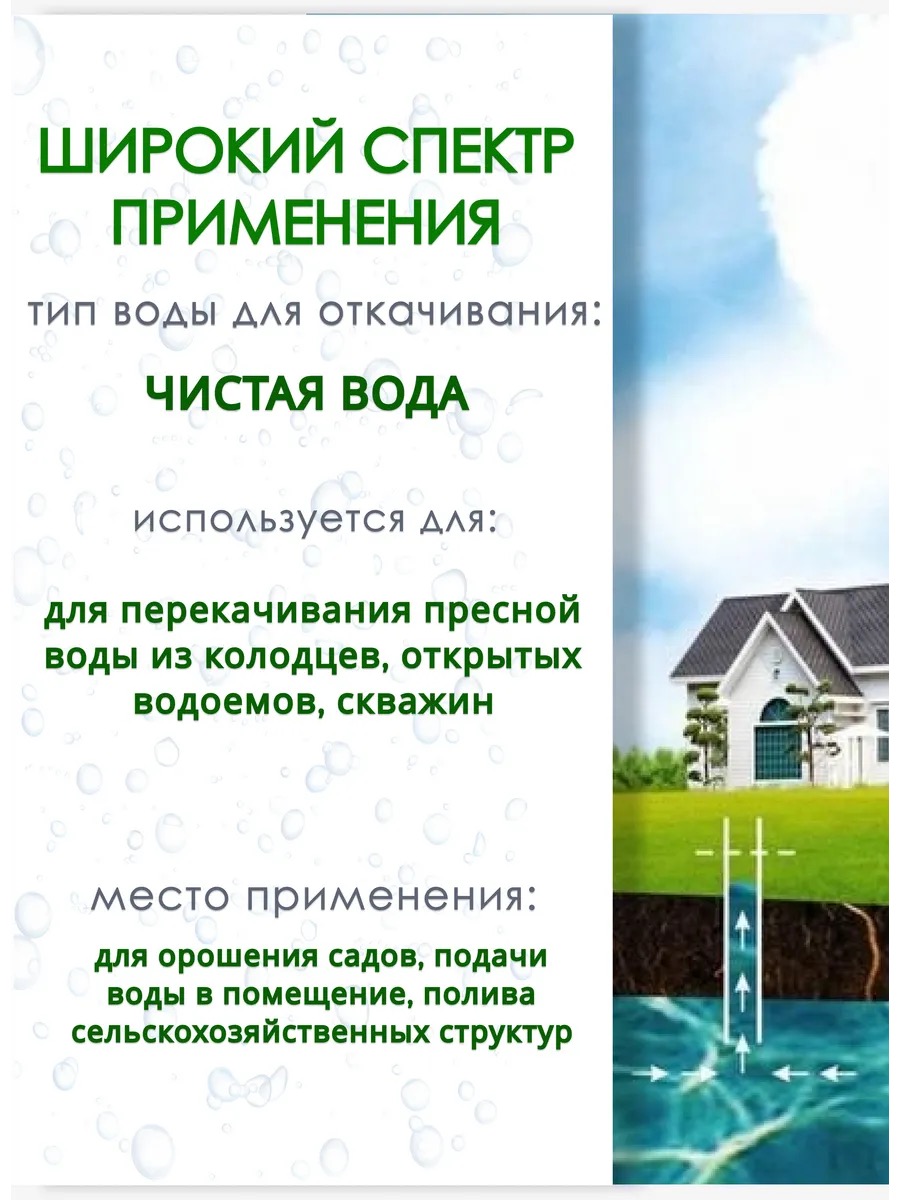 Этот электронасос конструктивно разработан для работы с чистой водой, делая его отличным выбором для использования в условиях, когда требуется быстрое и эффективное водоснабжение. Он отлично подходит для полива огорода, управления водоснабжением в доме и обеспечивания необходимых условий для ваших растений и газонов.