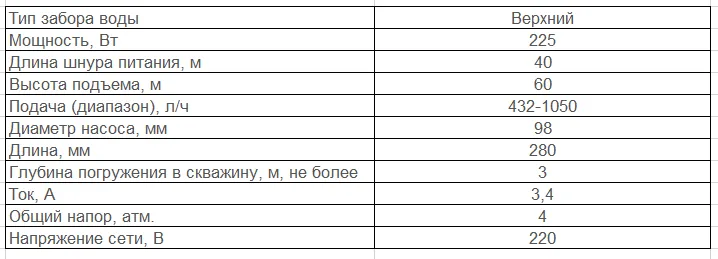 - В верхней части корпуса расположено всасывающее отверстие, что обеспечивает защиту электронасоса при понижении уровня перекачиваемой воды.