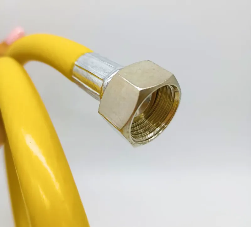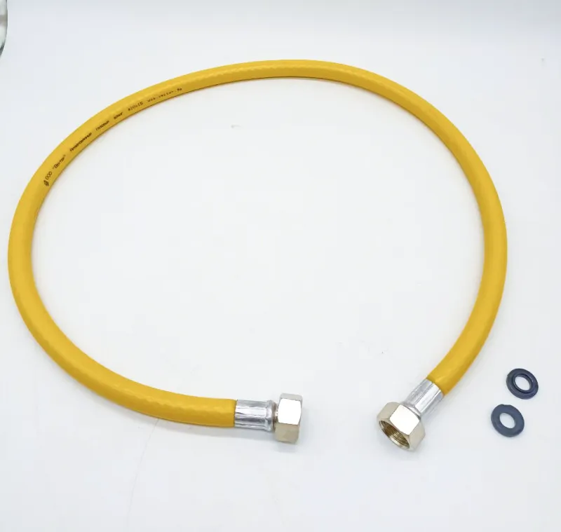подводка для газа изготавливается из трех слоев, внешний слой желтого цвета из термостабильного поливинилхлорида, внутренний слой из поливинилхлорида устойчивого к газовой среде, с армированием полиэфирной нитью, и концевой арматурой из железоуглеродистой стали с резьбой 1/2 дюйма.