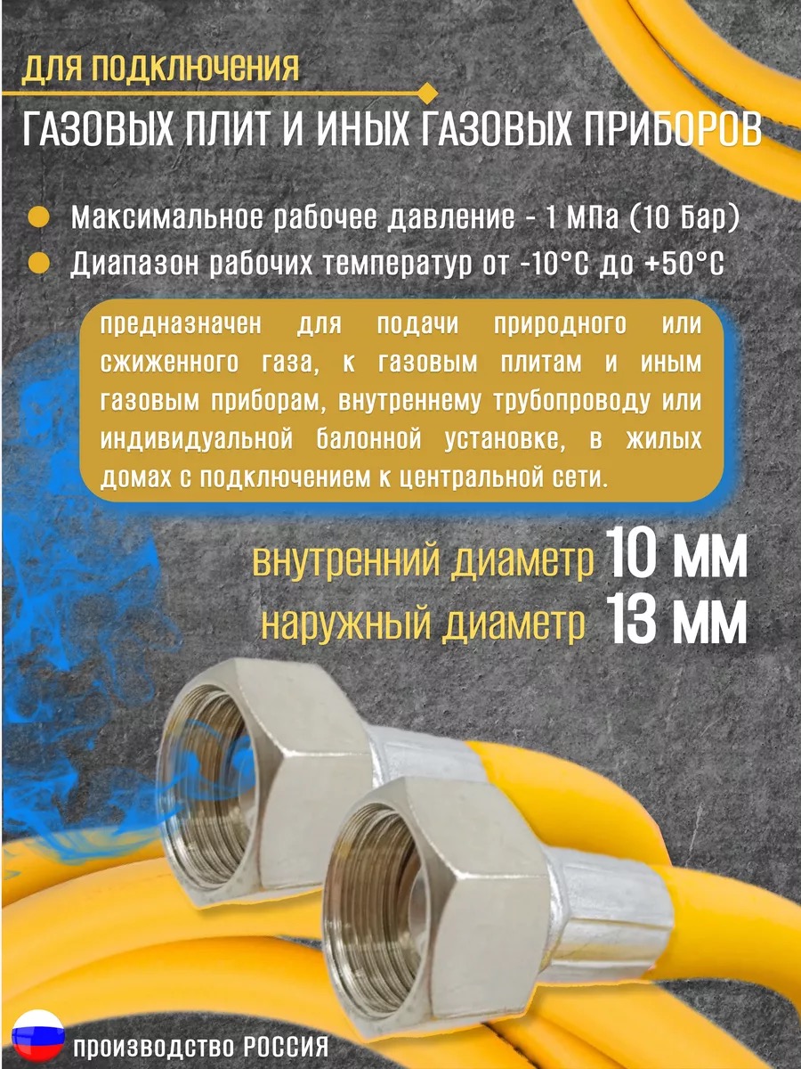 Газовый шланг армированный для газовый плиты производится и проходит испытания по ТУ завода изготовителя. При использовании данного шланга для подключения бытовых газовых приборов нет необходимости в использовании диэлектрической муфты (вставки).