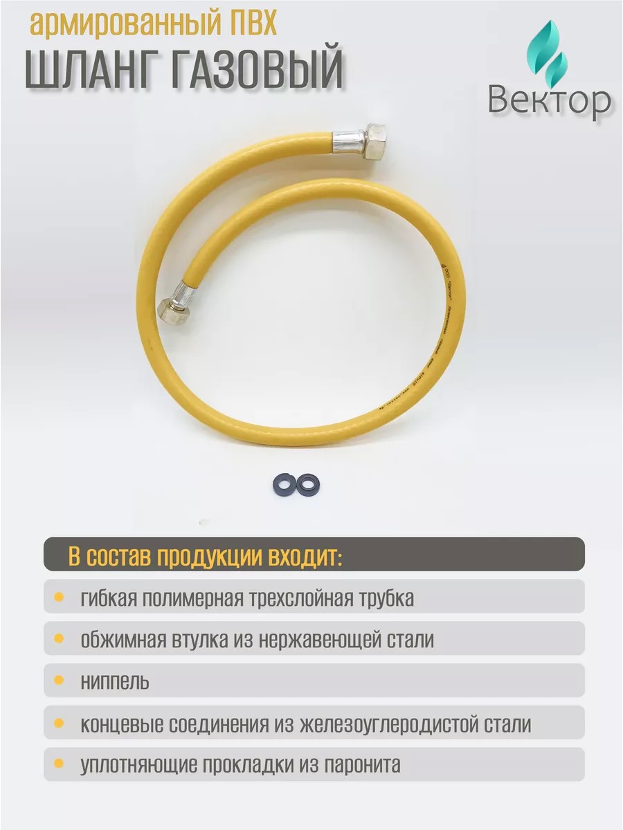 Шланг газовый 1/2 г/г 1,0 м "ВЕКТОР" ПВХ