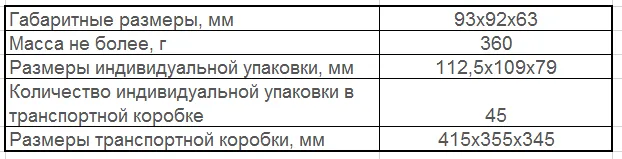 Упаковка и размеры