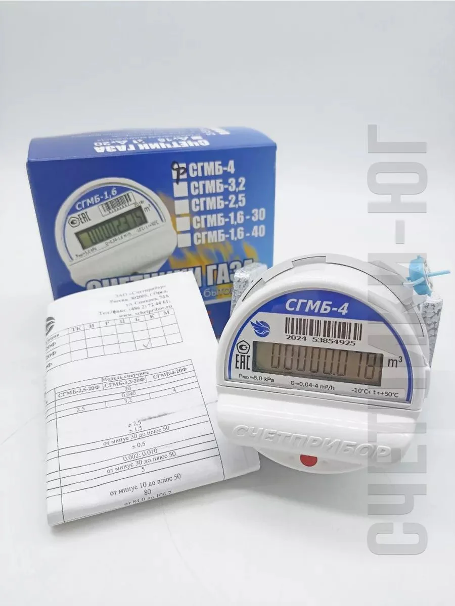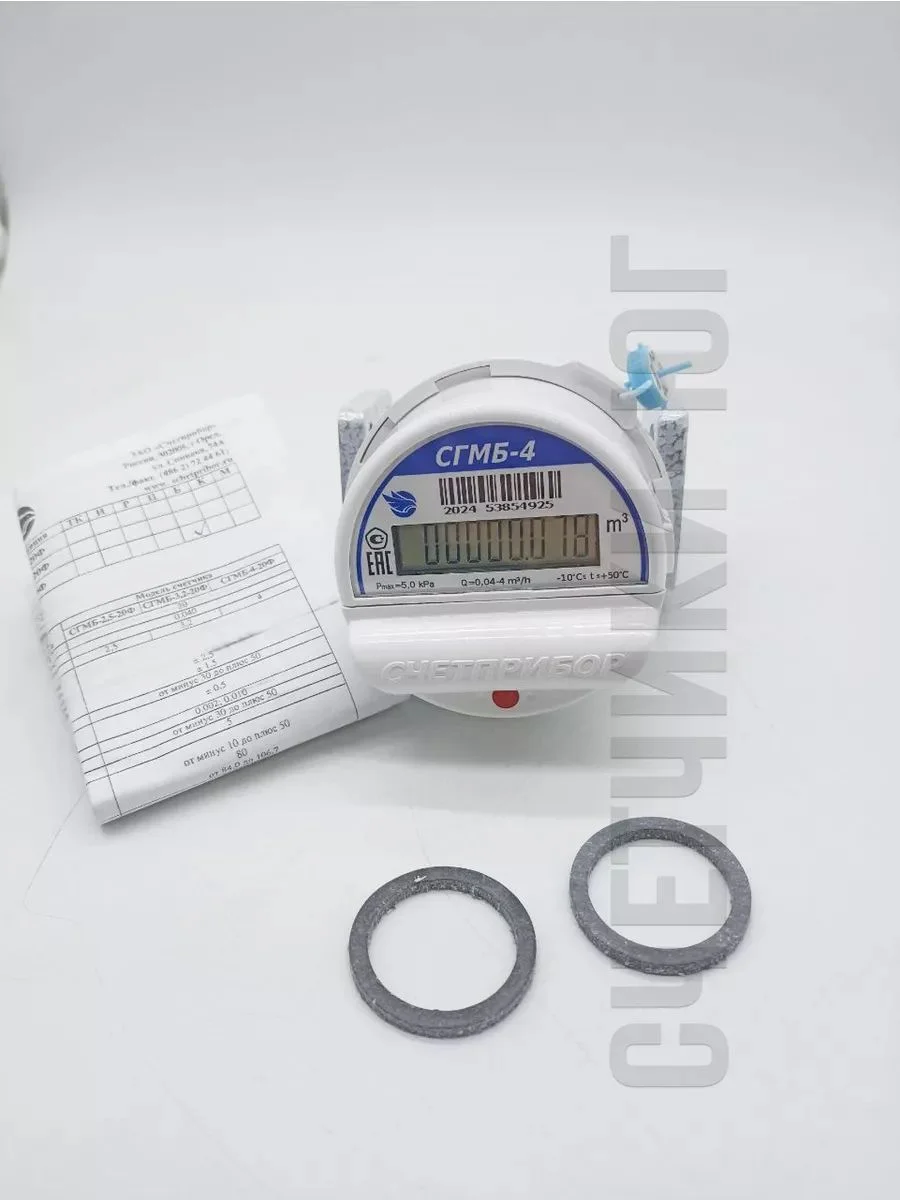 Счетчик газа малогабаритный бытовые СГМБ-4 предназначен для измерений объема газа, проходящего через счетчик (природного газа по ГОСТ 5542, паров сжиженного газа по ГОСТ 20448 и других газов, не агрессивных к материалам счетчика), применяемого в бытовых и производственных целях. Газовый квартирный счетчик состоит из: струйного автогенератора, заключенного в герметичный корпус с присоединительными патрубками; электронного блока; литиевой батареи для электропитания; крышки корпуса с пломбировочным кольцом.