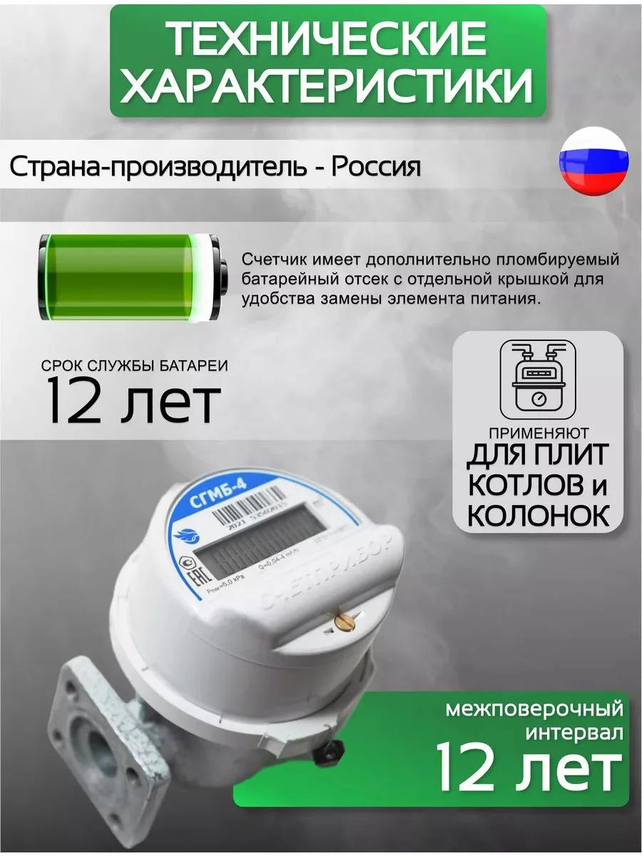 Счетчики газа СГМБ-4 фланцевый являются аналогами газовых счётчиков Омега и РЛ. Подходят для установки в квартирах и частных домах с двумя газовыми приборами (плита и колонка либо котел). Отсек для батареек на электронном счетчике расположен снаружи, что позволяет легко заменить элемент питания.