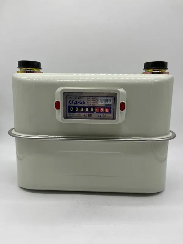Бытовой счетчик газа СГД G6 ТК мембранного типа, применяется при учете расхода природного газа. Счетчик газа СГД может быть установлен как в квартирах, так и в частных домовладениях с газовыми плитами и индивидуальными отопительными и водогрейными котлами, ЖКХ так и на улице.. Широкая линейка счетчиков газа СГД от G1,6 до G10, левосторонние/правосторонние, с термокорректором/без термокорректора.