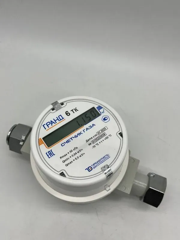 Счетчик газа ГРАНД 6 ТК с модулем NB-IOT Ду 3/4 — бытовой счетчик газа для квартир, домов и небольших объектов, где важны корректный учет расхода, понятное исполнение и совместимость с типовым узлом подключения.