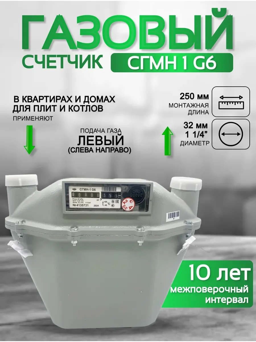 Счетчик газа СГМН 1 G 6 250 мм без КМЧ левый