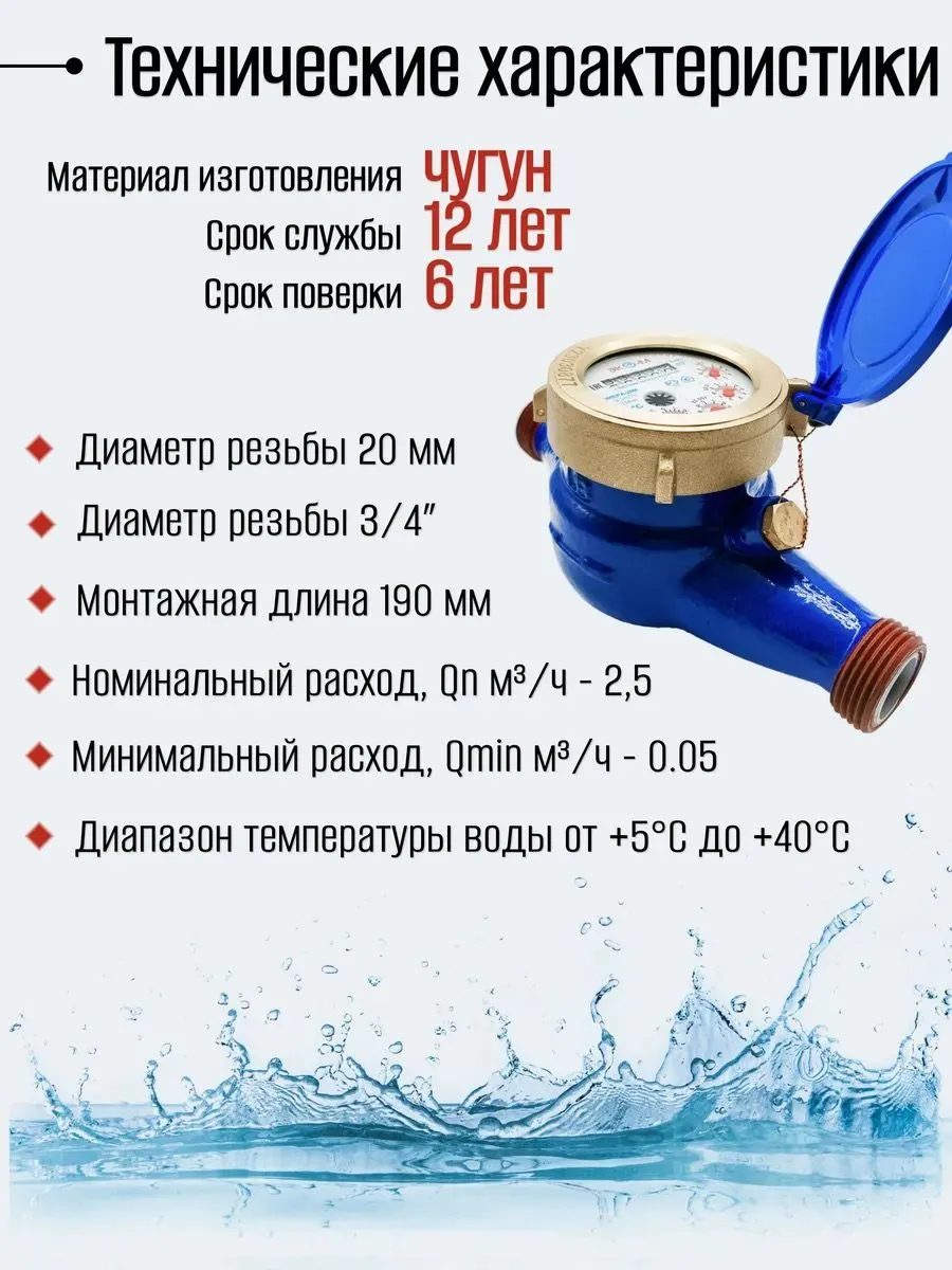 Счетчик воды ЭКОМЕРА-20М Мокроходный (Глицерин) l-190