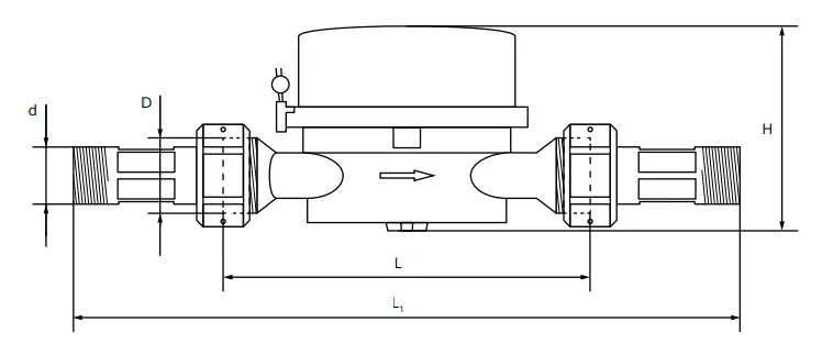 - может быть вмонтирован в горизонтальный или вертикальный трубопровод;