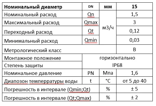 - Счетчики с диаметрами 15 и 20 имеют клапан обратного хода воды