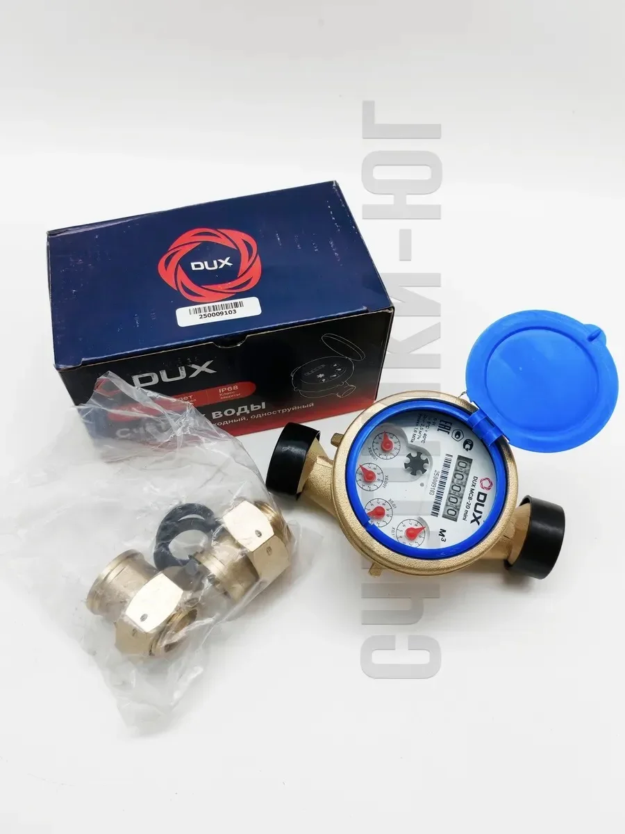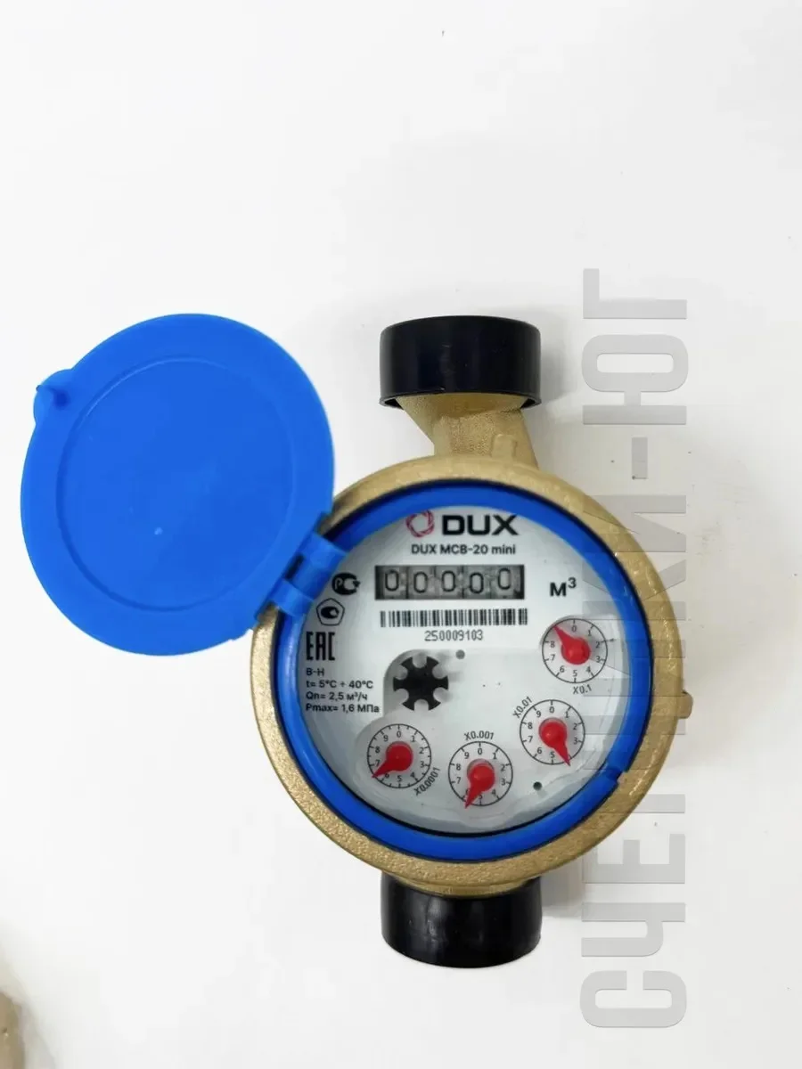 Счетчик воды мокроходный одноструйный DUX МСВ-20 mini +КМЧ, с комплектом монтажных частей (с КМЧ) - штуцер с накидной гайкой. От производителя ЭКО НОМ.