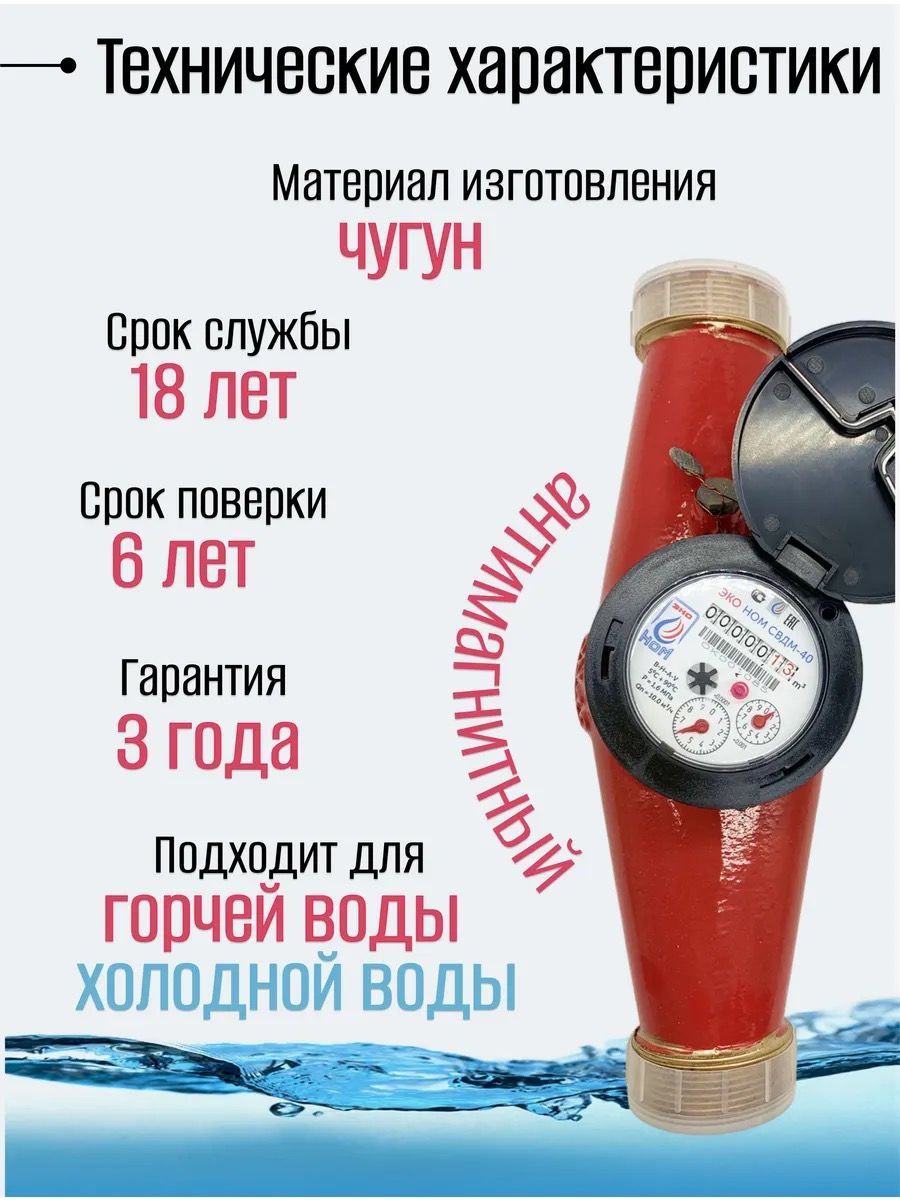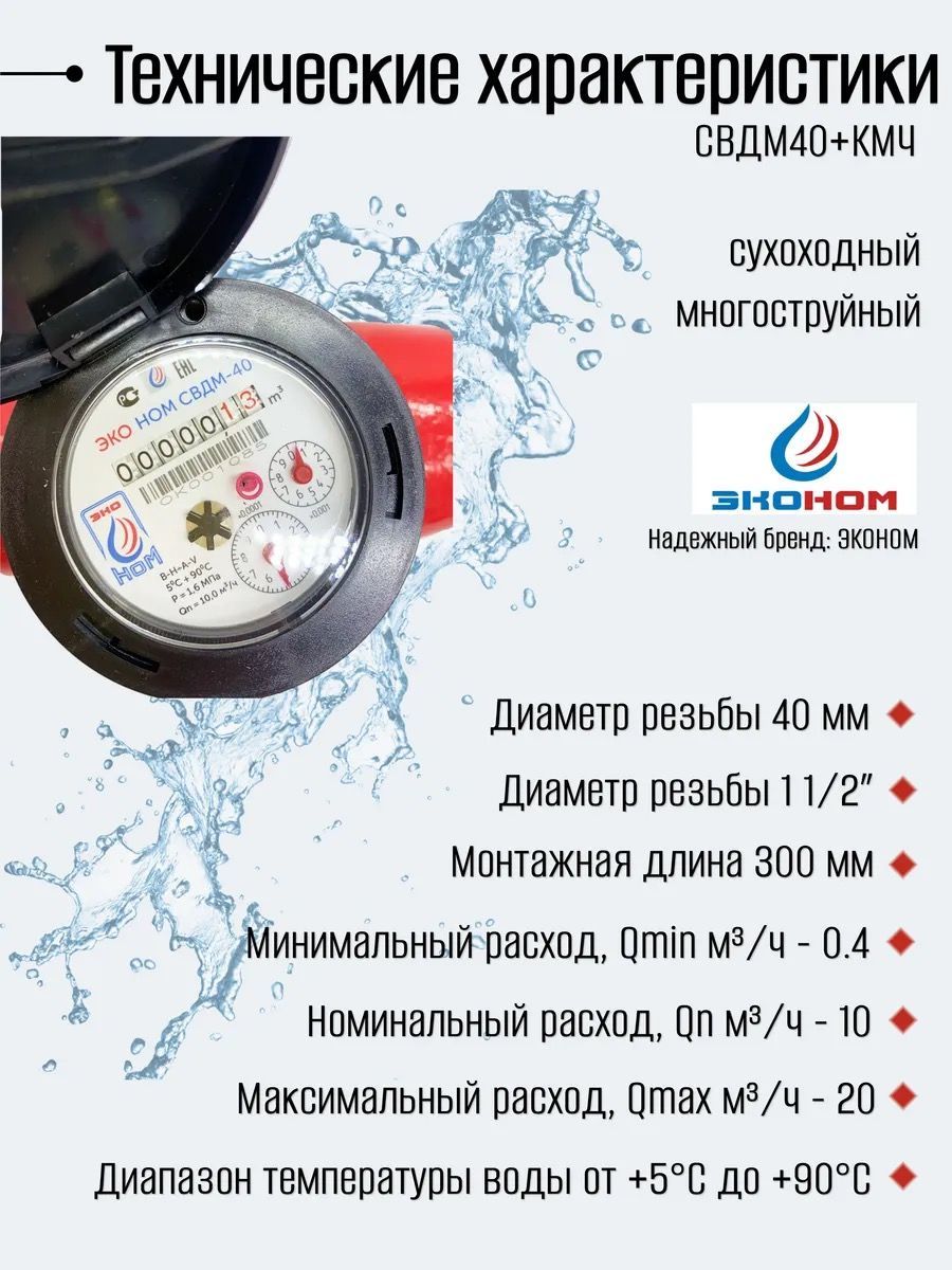 Счетчик воды универсальный ЭКО НОМ СВ ДМ-40+КМЧ