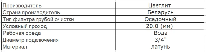 Фильтр осадочный предназначен для предварительной очистки питьевой воды или воды горячего водоснабжения и рекомендуется для совместной установки со счётчиками воды.Технические характеристики