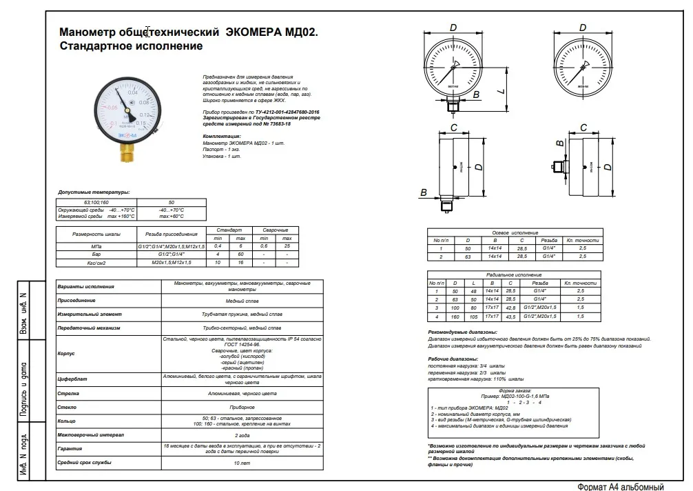 Манометр общетехнический ЭКОМЕРА МД02. Стандартное исполнение
