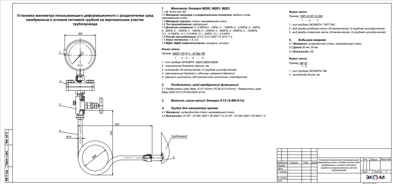 Манометр Экомера МД90; МД93; МД02